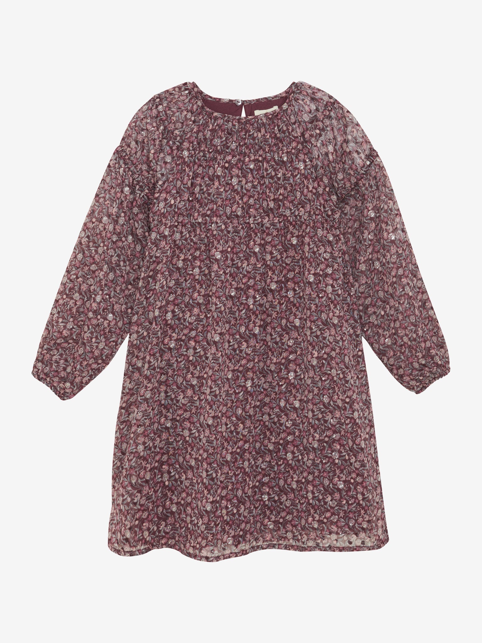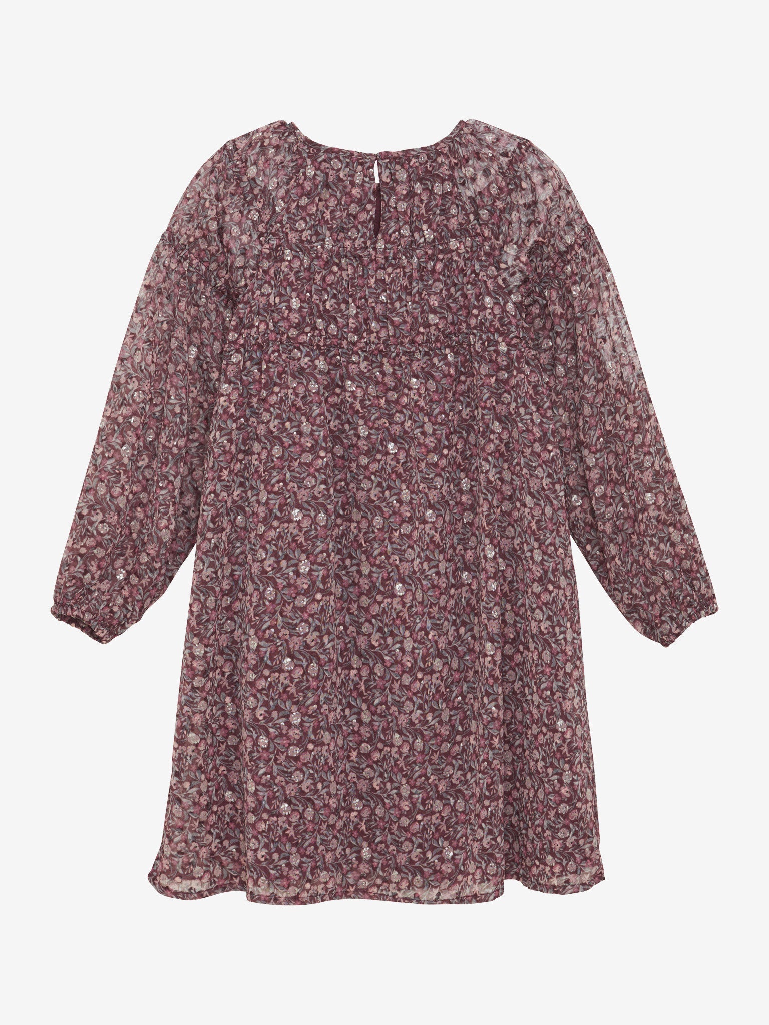Transparent wirkendes zartes Blümchenkleid von Creamie. Durch ein eingenähtes Unter-Kleid aus weicher Baumwolle ist es blickdicht und auch im Herbst/Winter gut zu tragen.