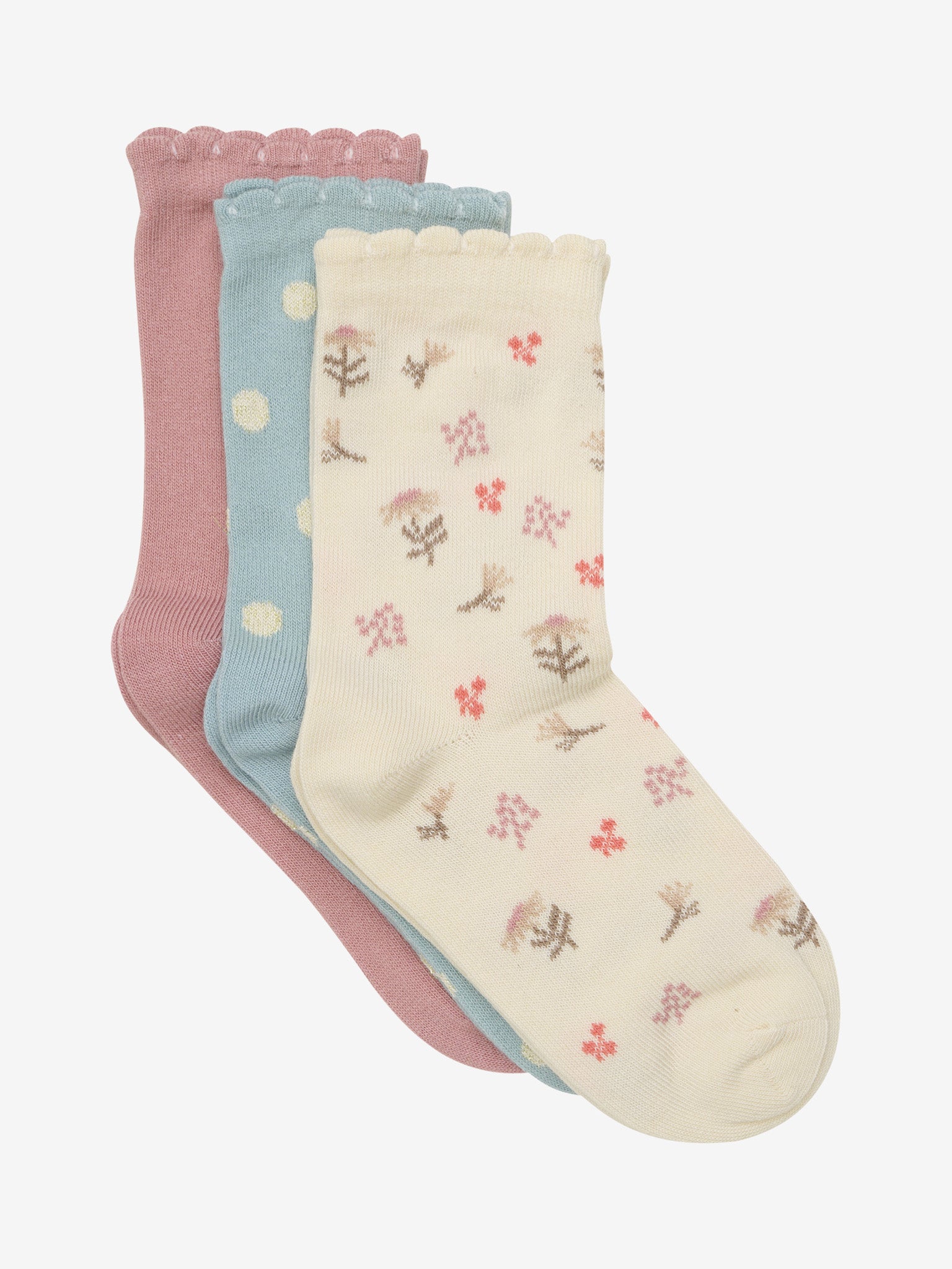 3er Set aus Motiv-Socken in zarten Pastell-Tönen und verschiedenen Motiven, eines davon mit Glitzer-Effekt.